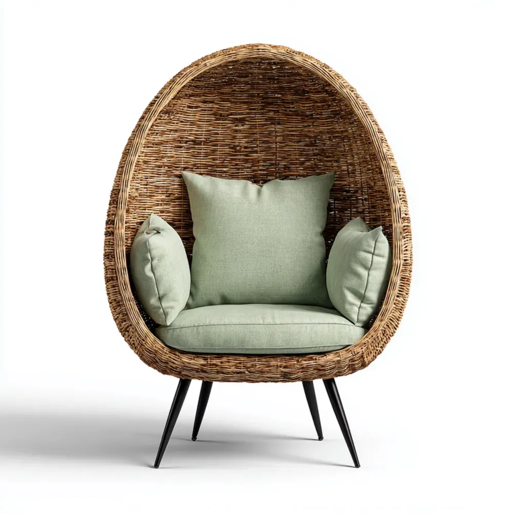エッグチェア 籐 90x85x150 cm – グリーン – 屋内外用