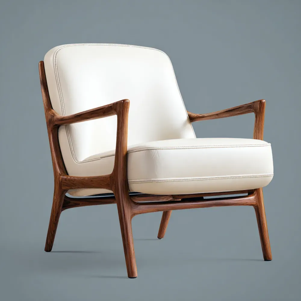 アームチェア 木製フレーム 合皮座面 - 80x75x85cm - アイボリー - ミッドセンチュリーデザイン